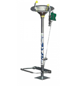 อุปกรณ์ชำระล้างสารเคมี/อุปกรณ์ชำระล้างสารเคมีแบบอ่างล้างตาสแตนเลสชนิดตั้งพื้น หัวฉีด 2 หัว แบบควบคุมแรงน้ำให้เท่ากัน วาล์วเปิดแบบผลัก และเท้าเหยียบ ตรงตามมาตรฐาน ANSI Z358.1