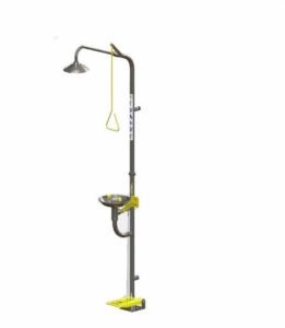 ชุดล้างตาและล้างตัวฉุกเฉิน ตรงตามมาตรฐาน ANSI Z358.1 วาล์วเปิดน้ำแบบมือผลักและเท้าเหยียบ