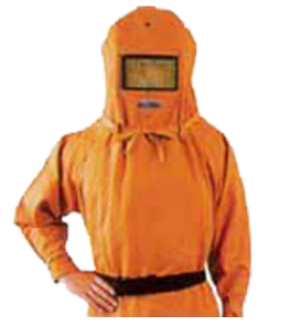 ชุดคลุมผลิตจากวัสดุผ้าใบอย่างดี ทนการเสียดสีสูง เลนส์ทำจากอะคริลิกเรซิ่น และลวดตาข่ายทองเหลือง ใช้สำหรับ พ่นทราย, ยิงทราย สำหรับใช้ในสถานที่ที่มีออกซิเจนน้อยหรือเต็มไปด้วยฝุ่นหรือสารพิษ ช่วยให้ผู้สวมใส่หายใจได้สะดวกและหายใจได้ยาวนานขึ้น